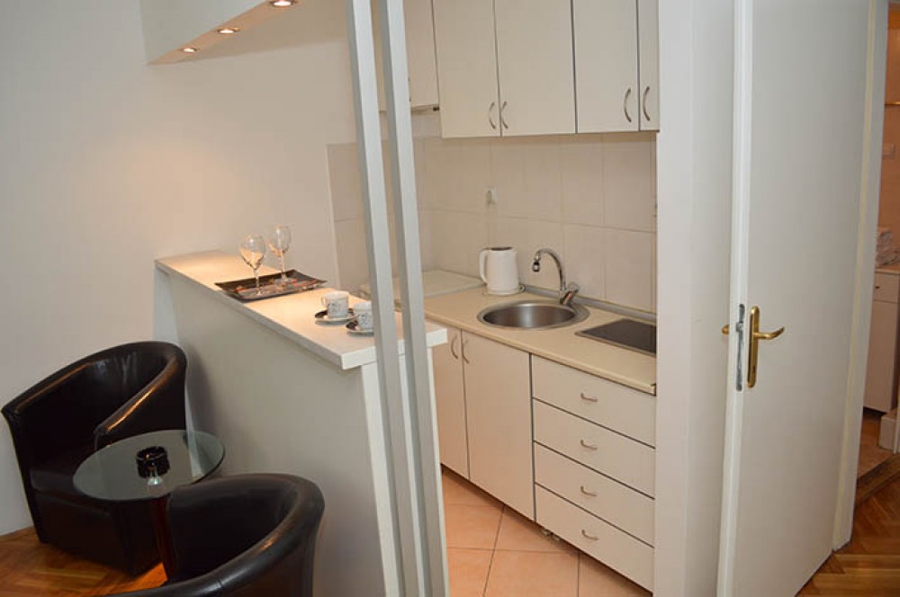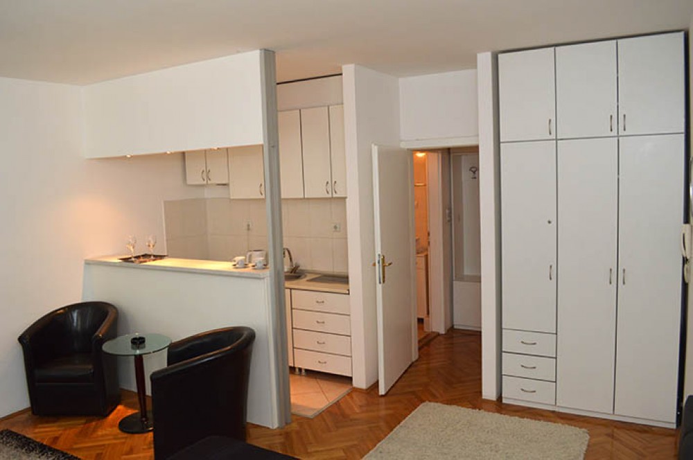 Apartman MALA ARENA lociran je na Novom Beogradu, preko puta Kombank Arene u zgradi sa liftom. Ima 31 kvadrata, i bez obzira na svoju veličinu vrlo je funkcionalan. Koncipiran je kao hotelska soba i idealan je za poslovne ljude, jednu ili dve osobe(par). Sastoji se od dnevne/spavaće sobe, opremljene kuhinje sa ugradnom pločom, prostranog hodnika i kupatila. Ukoliko dolazite automobilom parkiranje Vam neće predstavljati veći problem. Do centra grada potrebno je manje od 5 minuta vožnje, tržnog centra Delta City svega par minuta a do Ušća, savskog i dunavskog keja manje od 5 minuta takođe. Do hotela IN i hotela Holiday Inn potrebno je svega par minuta pešice.